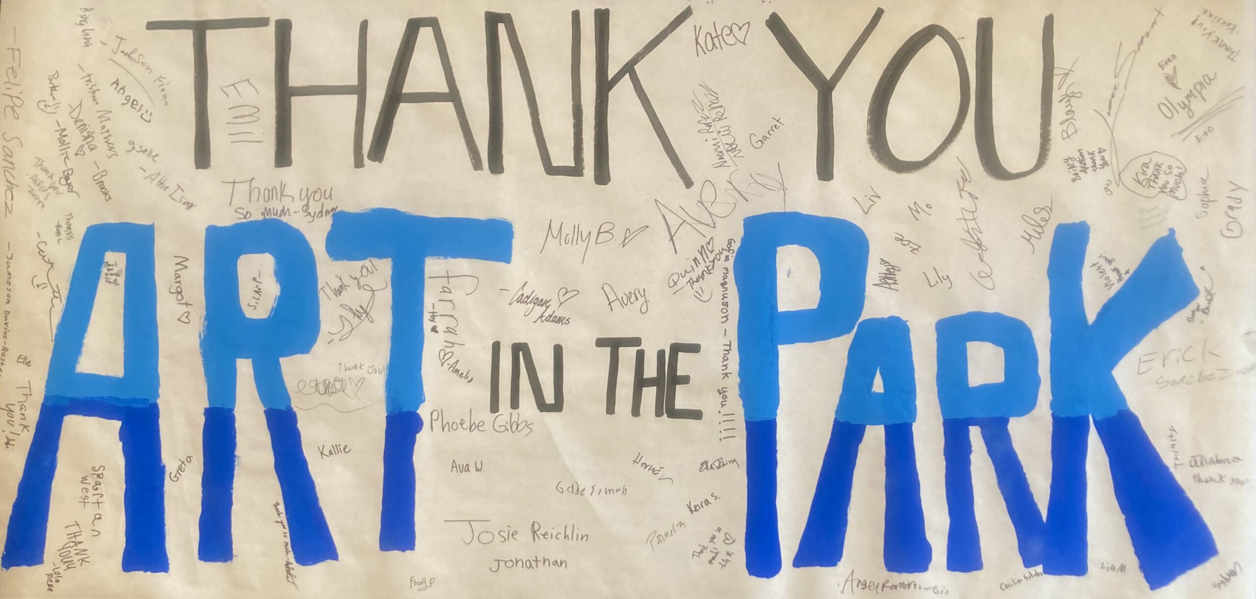 Village Art in the Park will be supplying all of the art supplies for the art students at Peshastin-Dryden Elementary, Alpine Lakes Elementary, and Icicle River Middle School for the 24/25 school year. The Icicle River Middle School art students made us a giant Thank You card to show their appreciation.