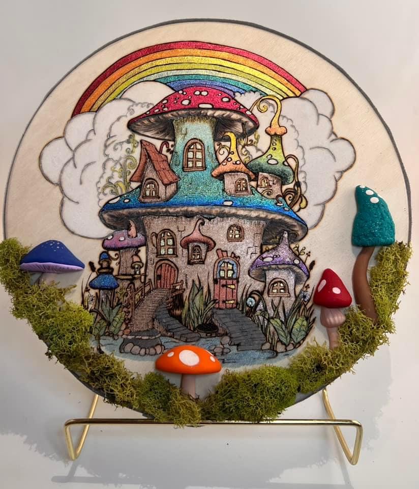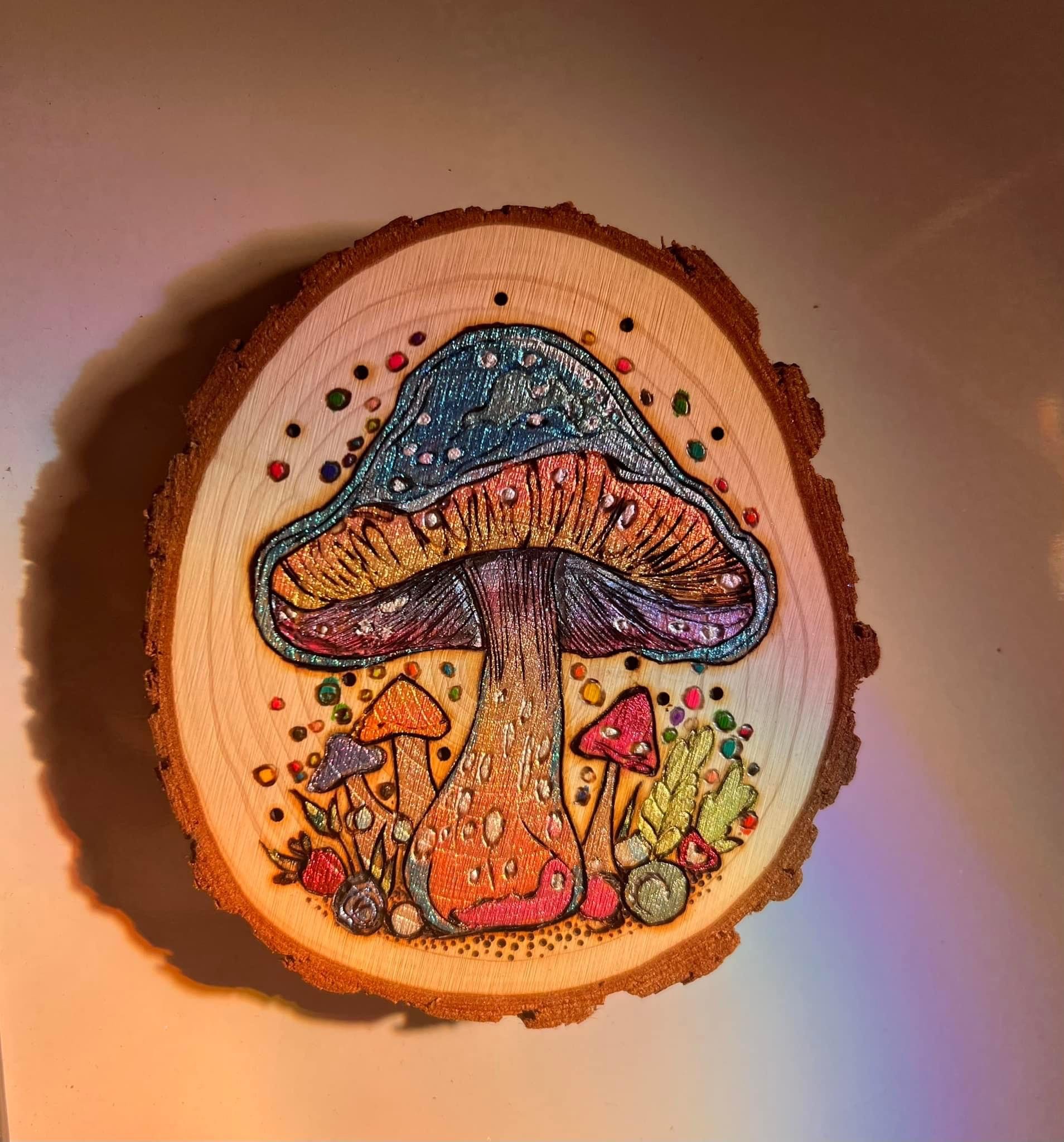 I am currently a trainer for Ambitions, where I teach staff to care for adults with developmental disabilities. When I go home at night, I create works of art. I am typically drawn to create one-of-a-kind creations, dabbling in graphite portraits, polymer, resin, alcohol inks, painting, watercolor, wood burning and many other tactile pieces.