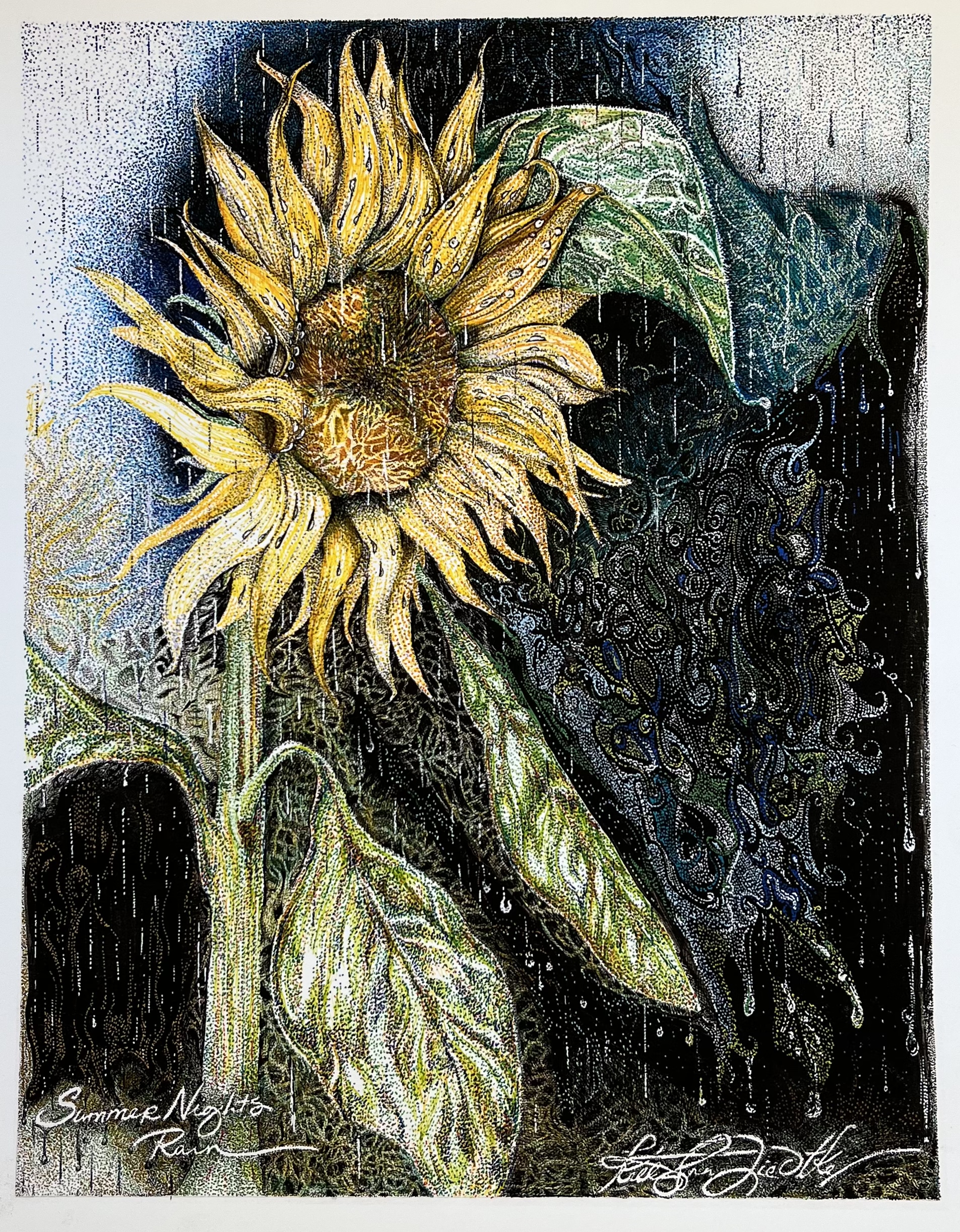 Art has always been there, I discovered ink in high school and pointillism about the same time, then I was hooked! Working with ink is both forgiving and very very not forgiving at the same time, I fell in love with the challenge as well as the journey each drawing takes you on. Sometimes it is fast and crazy and other times its simple and easy. I love the way their own energy and mine work into the final piece just like how it should be. It is important that you understand this haunts me and keeps me awake, even though I’m busy with the other passions and responsibilities in my life the drawings are working in my head, and waiting for their moment. I have told many people yeah the drawings take time 15-45 hours, but the real struggle is in the planning that can take months or years.