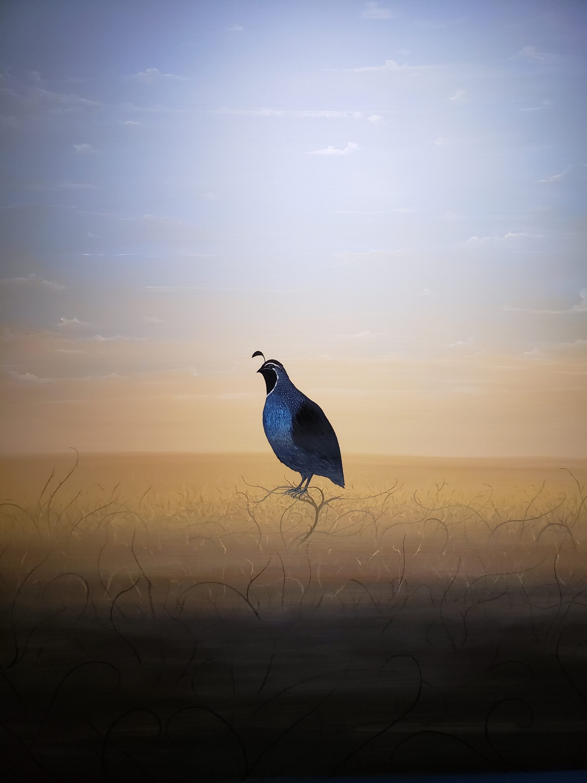 “These paintings sustain the metaphor of sky and creature to the human spirit. Michael’s journey is that of a young artist in search of the indefinable. The artifacts of the search are here, on these canvases. The sense of longing and belonging is palpable and the heart is everywhere evident. It is brave and honest work.”